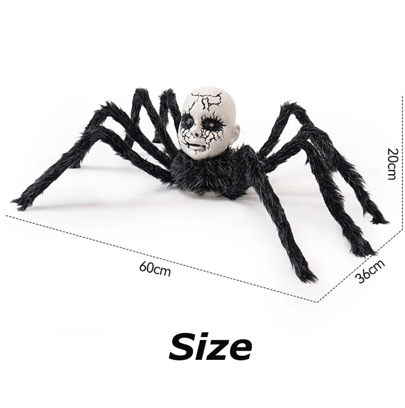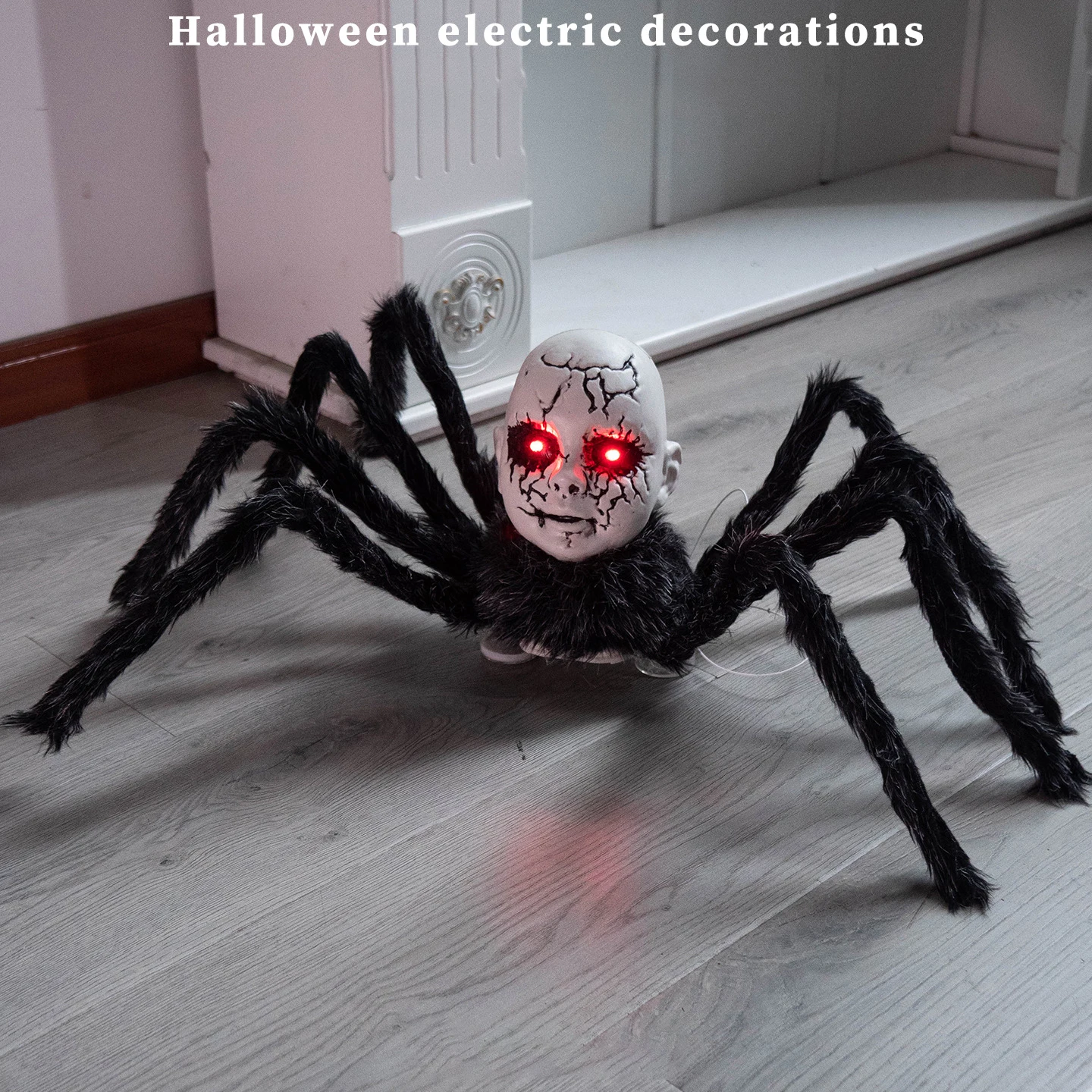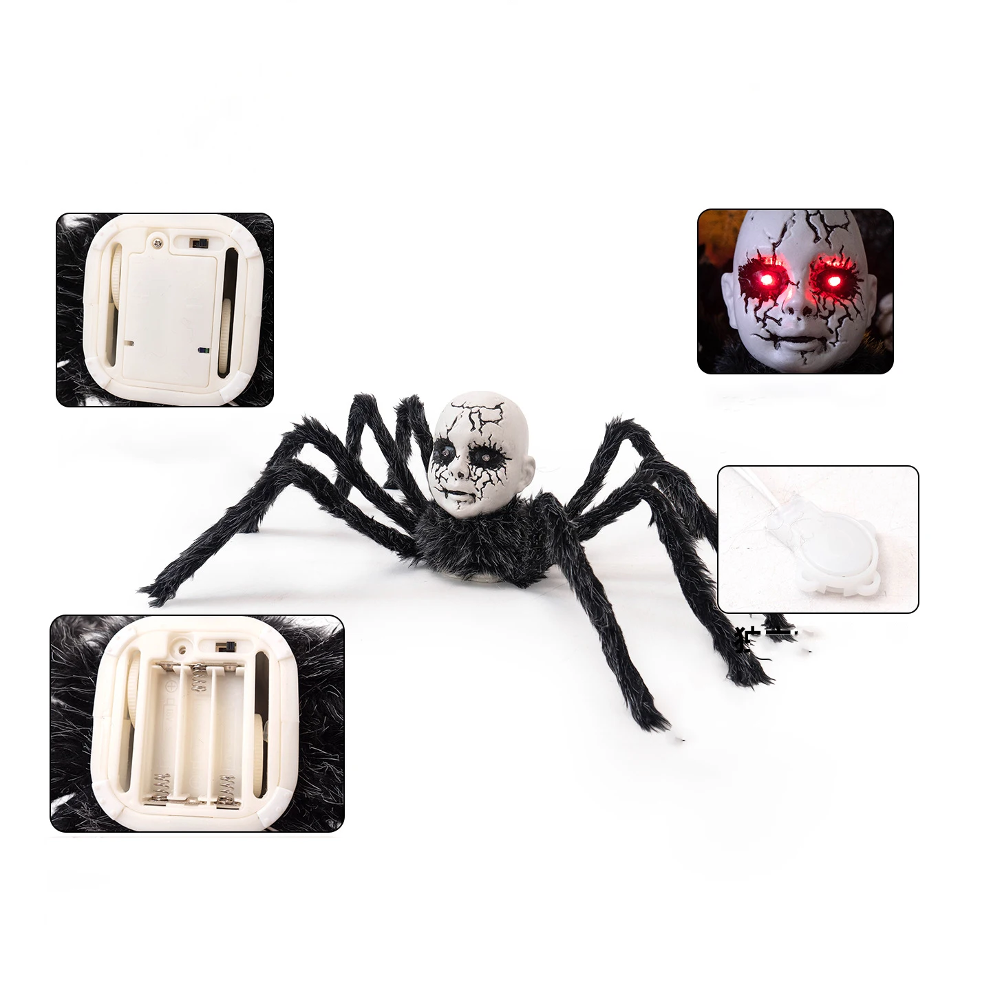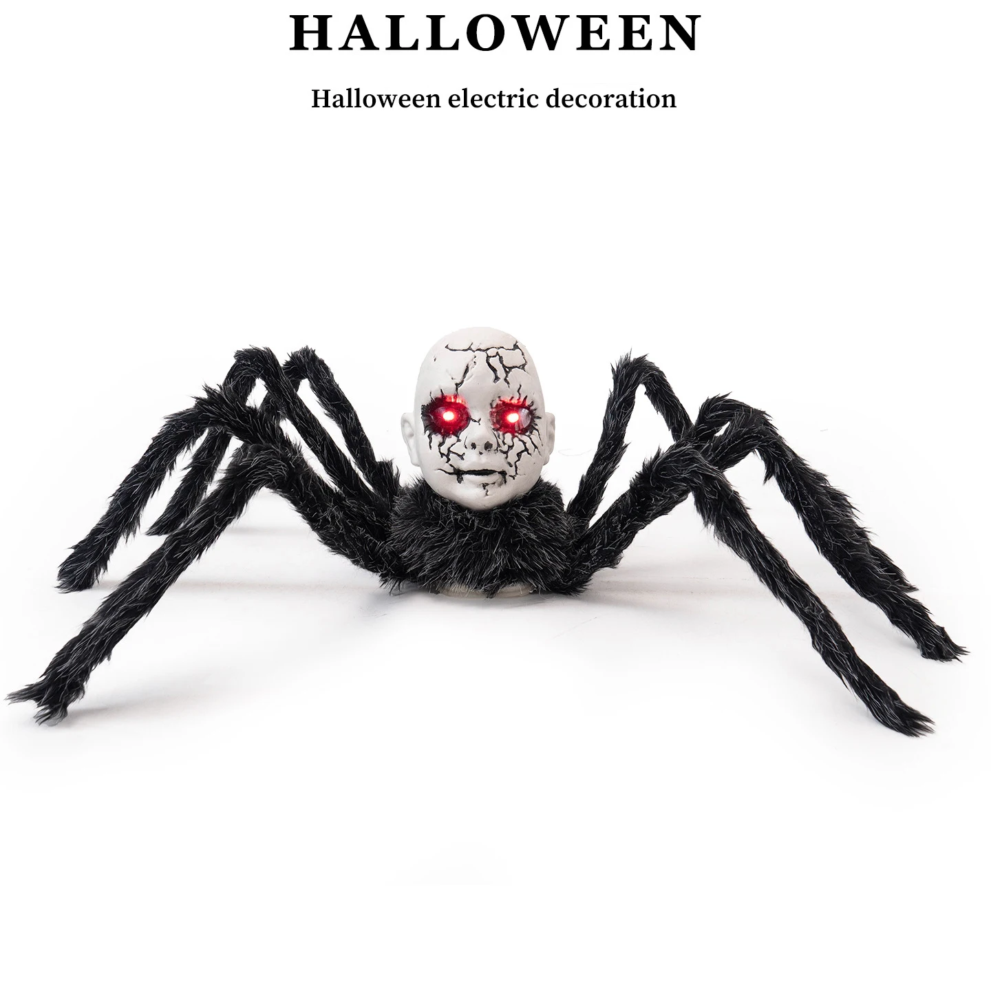Horror Halloween Electric Walking with Sound Light Doll Face Spider Haunted House Prop Plush Spider Model Halloween Party Decor